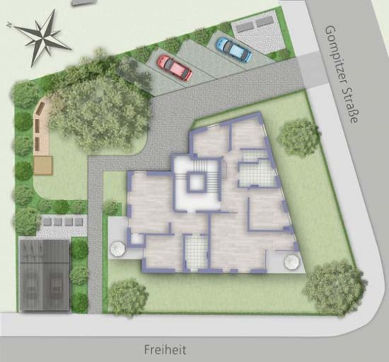 Das neu zu errichtende Mehrfamilienhaus entsteht an der Ecke der Gompitzer Straße und der Freiheit. Von hier aus kommen Sie in wenigen Minuten in die Innenstadt und zu den nahe gelegenen Autobahnanschlüssen zur A4 und A17.